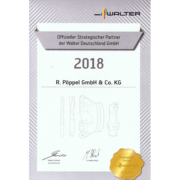 Jeder Tag bedeutet für uns eine neue Herausforderung. Jede Gelegenheit einer neuen Herausforderung packt Pöppel ehrgeizig an. Der Lohn für unermüdliche und hochmotivierte Bereitschaft, gemeinsam mit Walter neue Wege zu gehen, zahlte sich 2013 in der Ernennung von Pöppel zum strategischen Partner von Walter mit der Vergabe des Gold Partner Status aus.